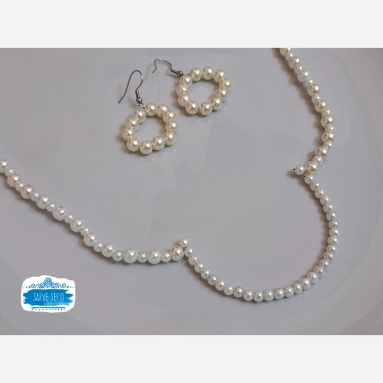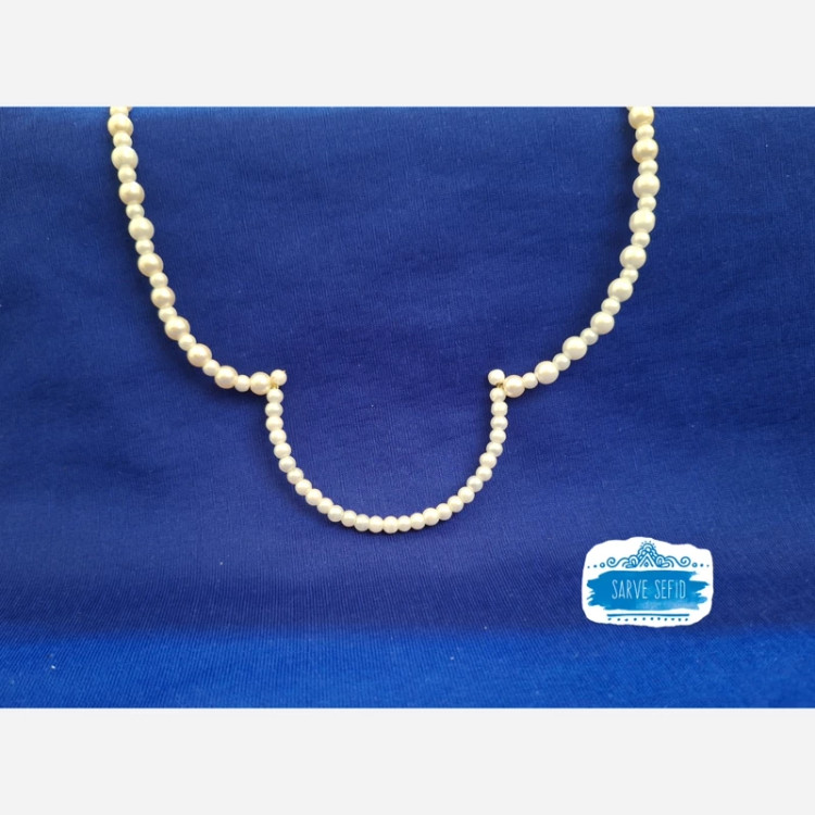 > گردنبند دستساز مدل «شادیانه» با مهرههای مرواریدی درخشان، انتخابی ظریف و زنانه برای درخشش در هر مجلس. ساختهشده با دقت هنرمندان «سرو سفید».
