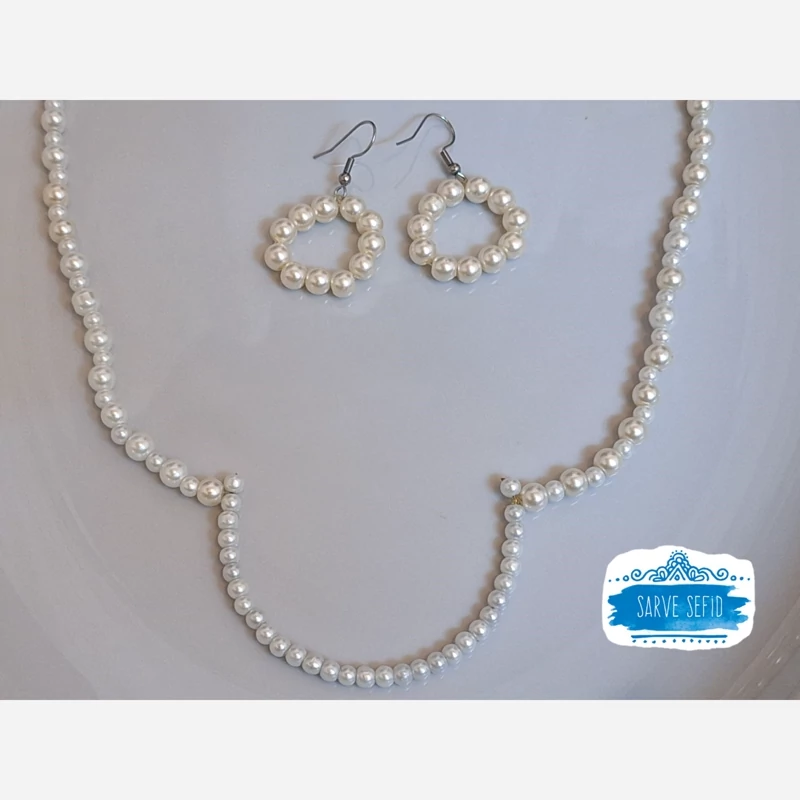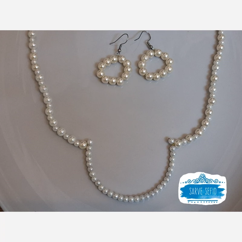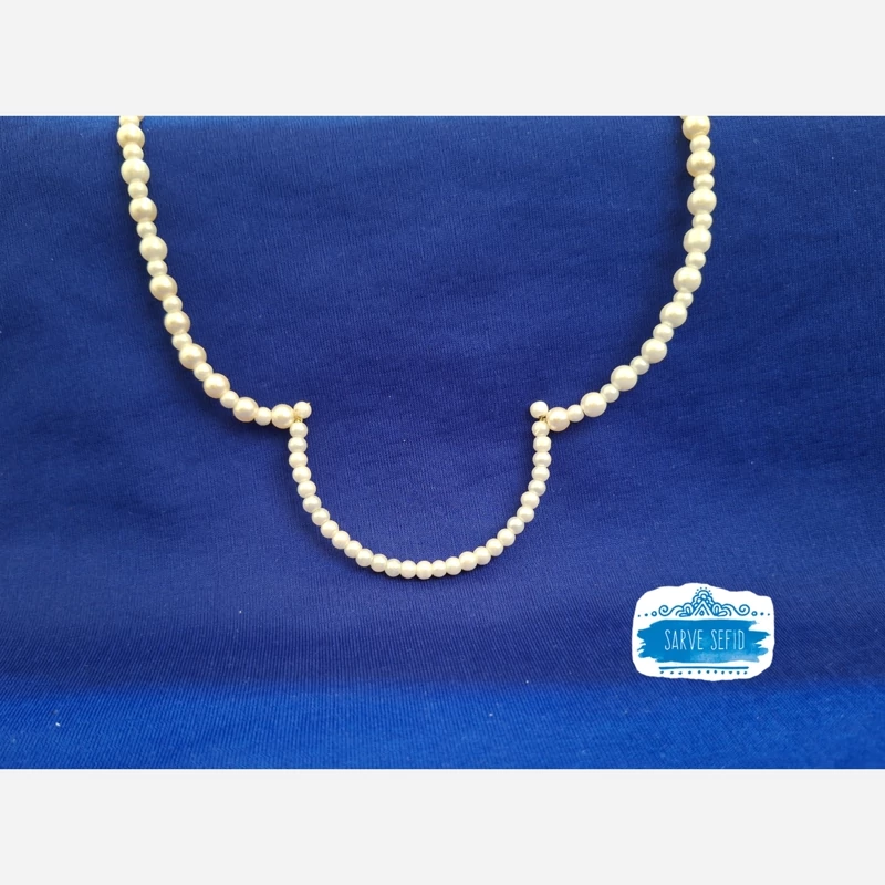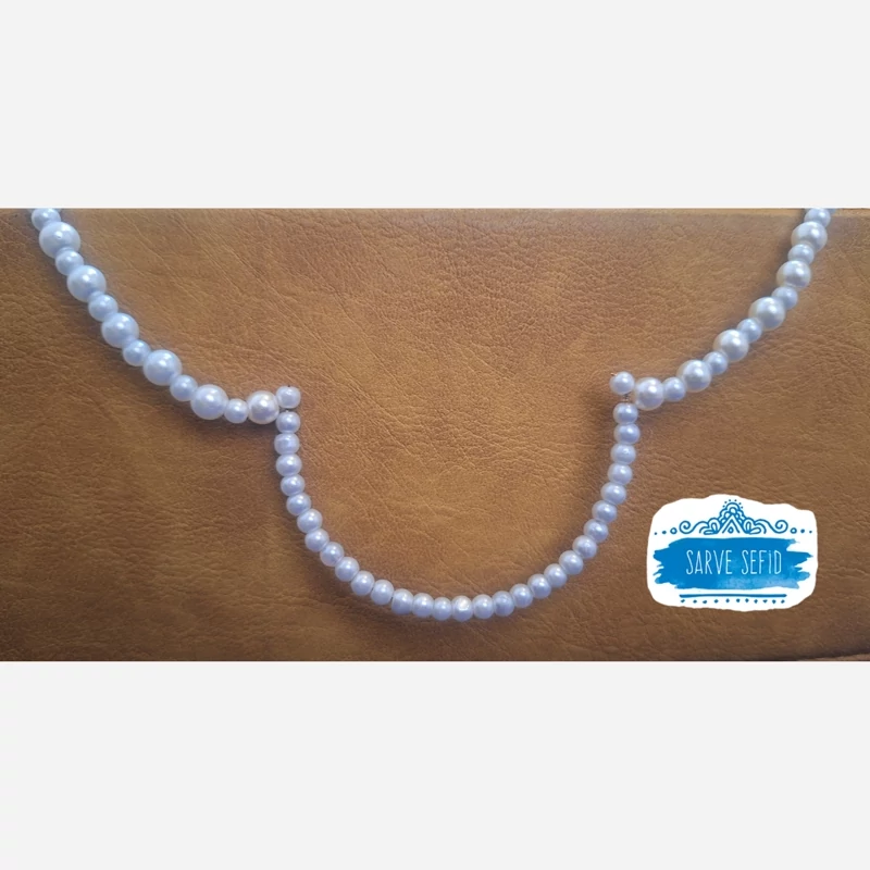 > گردنبند دستساز مدل «شادیانه» با مهرههای مرواریدی درخشان، انتخابی ظریف و زنانه برای درخشش در هر مجلس. ساختهشده با دقت هنرمندان «سرو سفید».