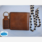 ست دستساز شامل جاسوئیچی و جاکلیدی چرم گاوی + گردنبند و دستبند مهرهای با سنگ طبیعی چشمببر