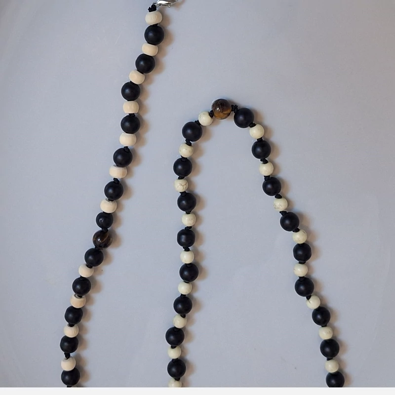 ست دستساز شامل جاسوئیچی و جاکلیدی چرم گاوی + گردنبند و دستبند مهرهای با سنگ طبیعی چشمببر