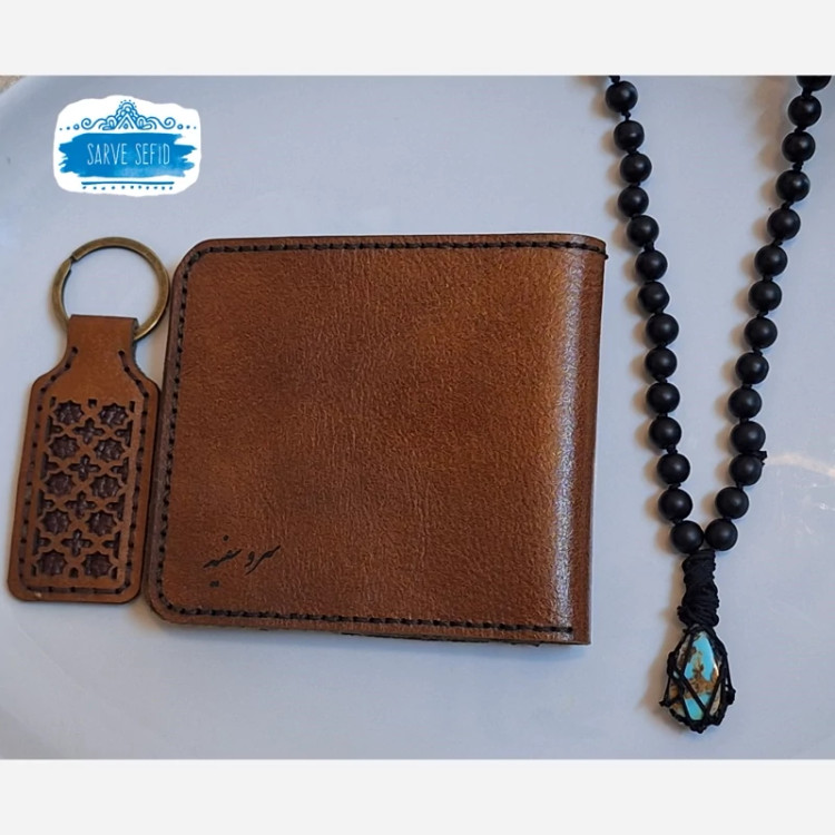 هدیه نوران شامل گردنبند اونیکس و فیروزه و ست چرم طبیعی گاو