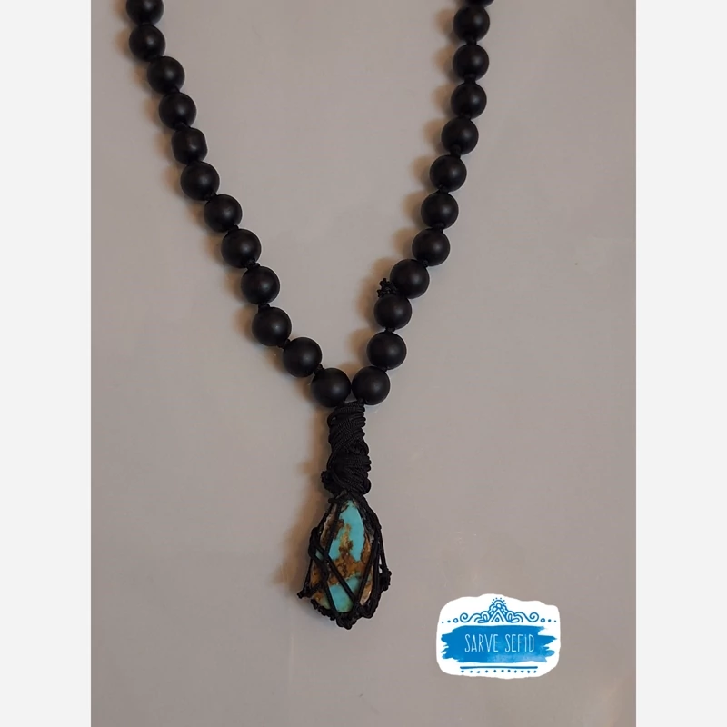 گردنبند اونیکس با اویز فیروزه معدنی اصل