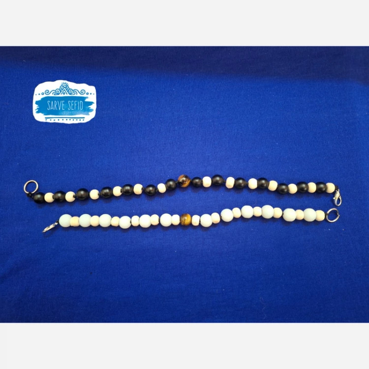 ست دستبندمردانه زنانه چوب و سنگ چشم ببر مدل کایا