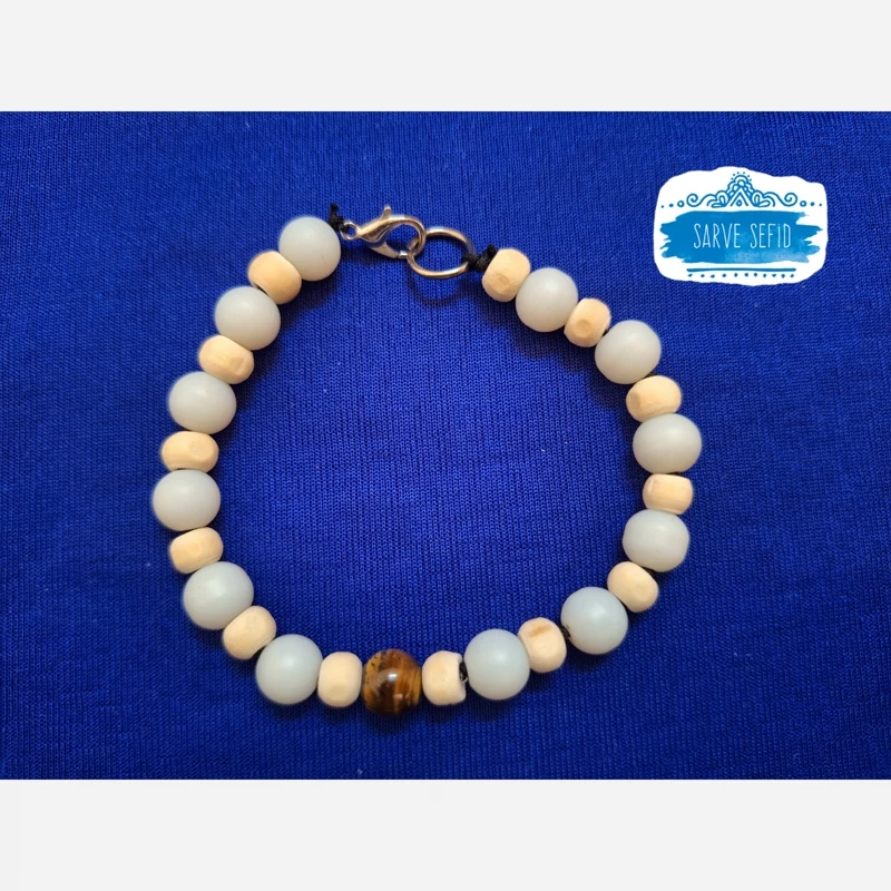 ست دستبندمردانه زنانه چوب و سنگ چشم ببر مدل کایا