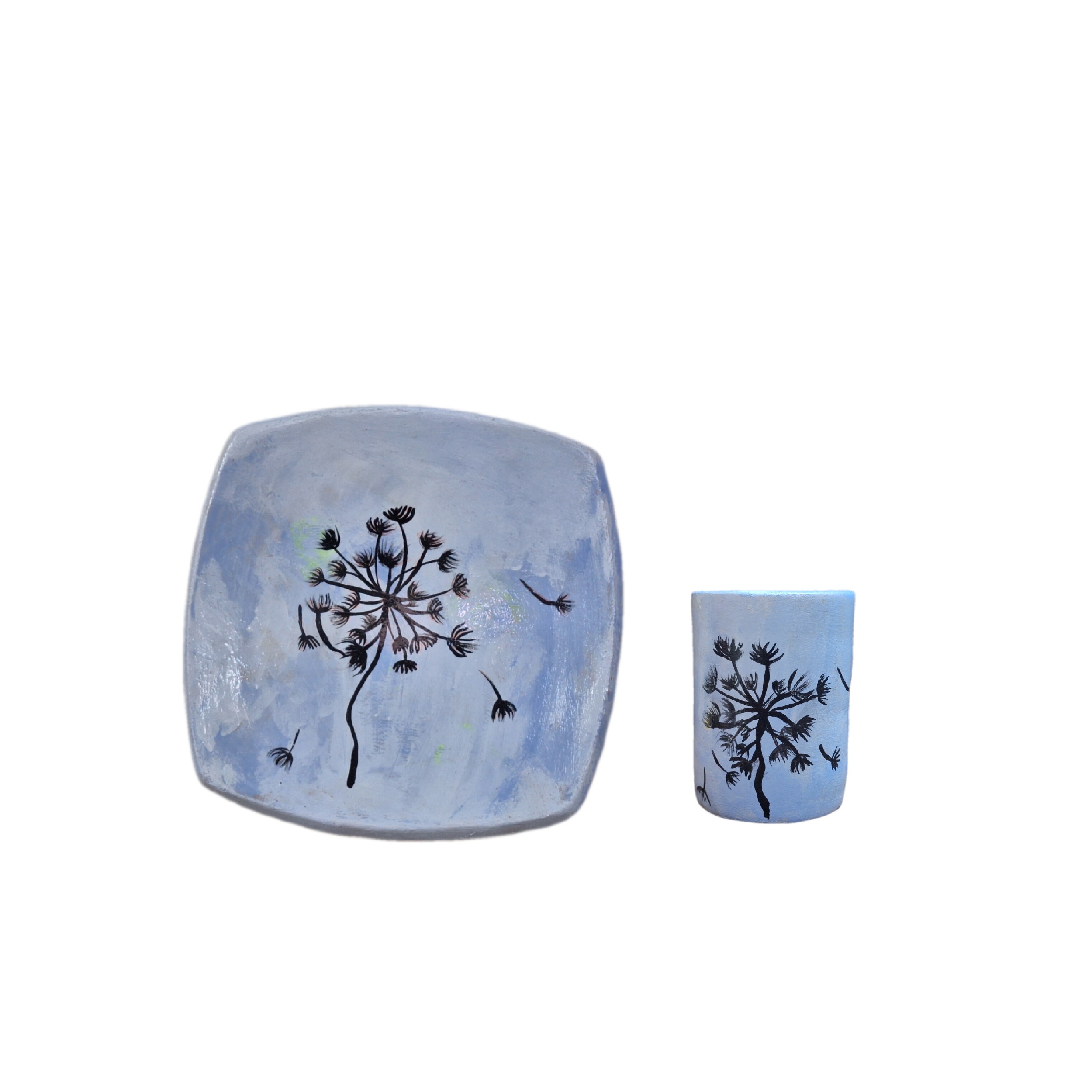 ست بشقاب و جا شمعی کار دست مدل اسمان